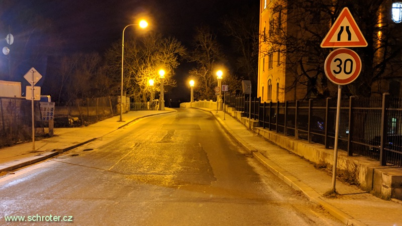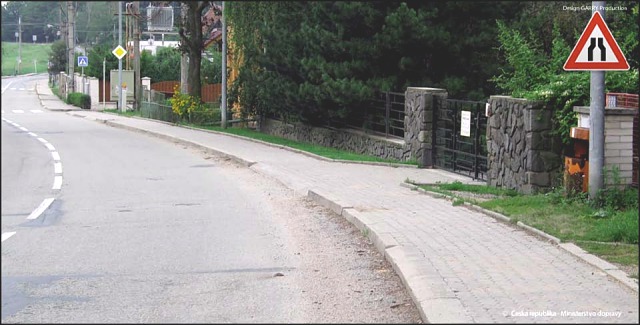 Přizpůsobím jízdu tomu, že se vozovka oproti předcházejícímu úseku výrazně zužuje, a to z obou stran. |