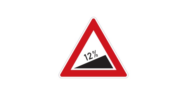 Upozorňuje na úsek pozemní komunikace s prudkým stoupáním. Na značce se uvádí skutečný nejvyšší podélný sklon vozovky. |