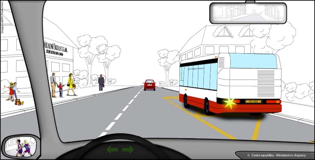 Ne, protože autobus vyjíždí od okraje pozemní komunikace. |