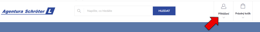 2. Na stránce e-shopu „Autoškola? Pohodlně!“ kliknete v pravém horním rohu na „Přihlášení“.