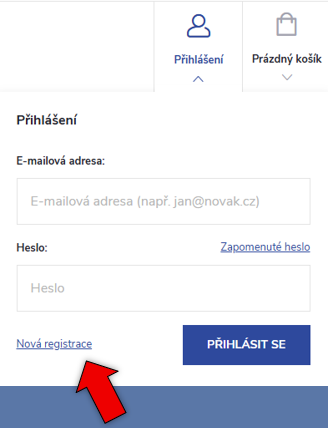 3. Po rozbalení nabídky k přihlášení kliknete na „Nová registrace“. |