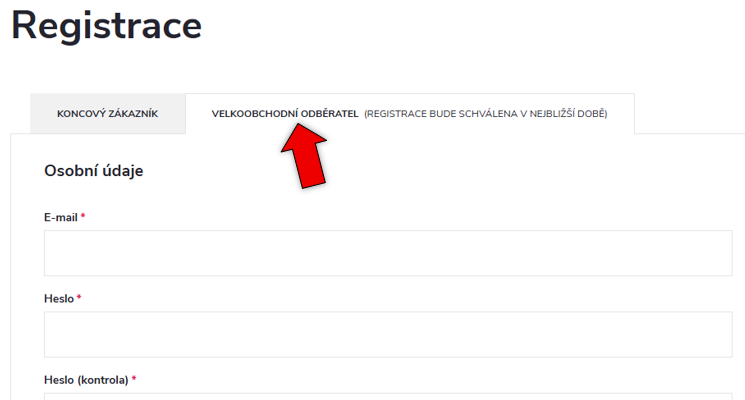 Postup registrace do e-shopu jako „VELKOOBCHODNÍ ODBĚRATEL“ (stručný návod též v PDF ZDE): |