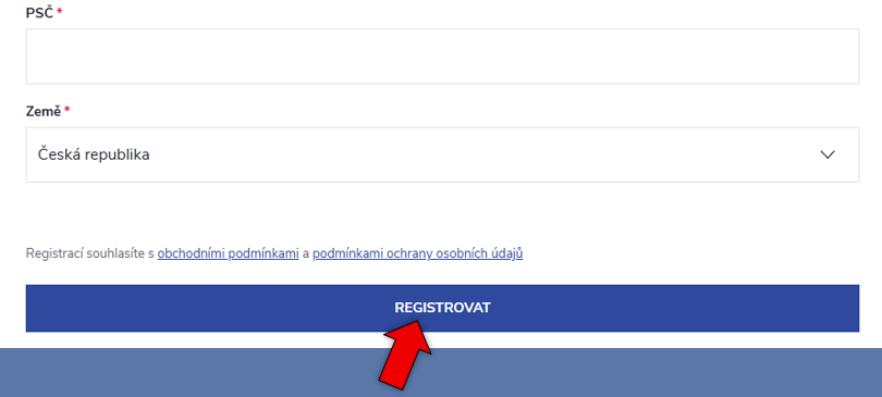 6. Je-li vše správně vyplněno, kliknete na tlačítko „Registrovat“.